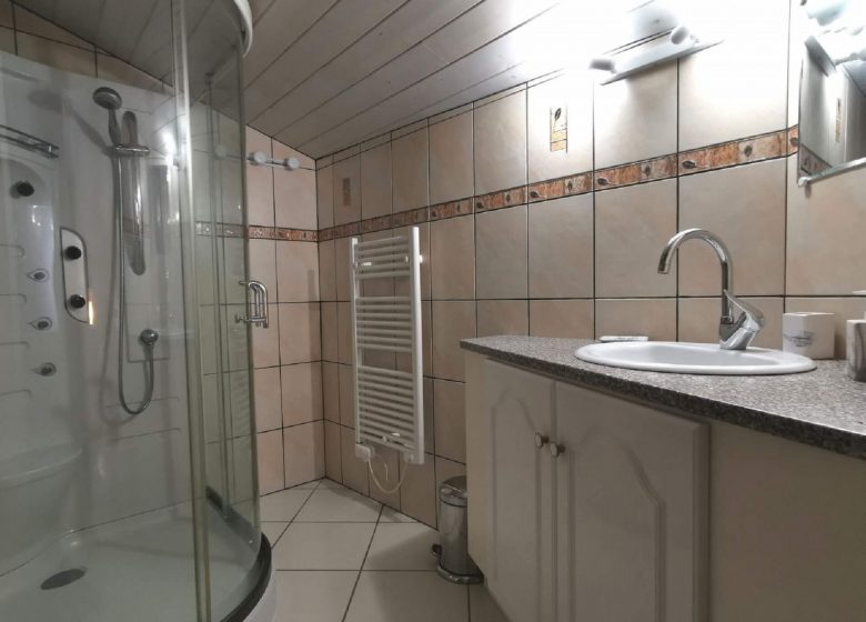 Au premier étage vous découvrirez une suite parentale avec coin salon donnant accès à une salle d'eau équipée d'un sauna (en option)