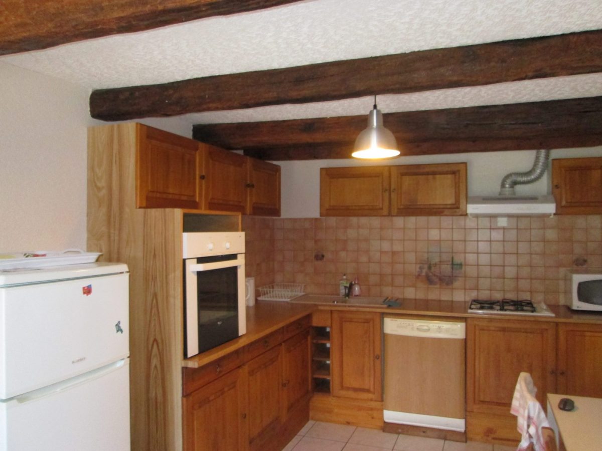 Grande cour dallée commune et pré à disposition. Cuisine équipée : micro-ondes, réfrigérateur-congélateur, four électrique, hotte aspirante,...
