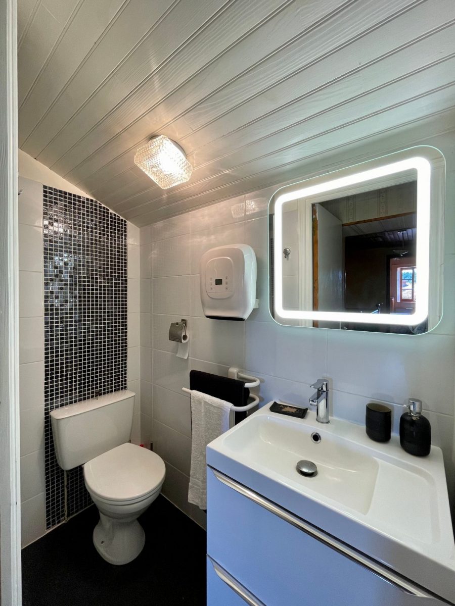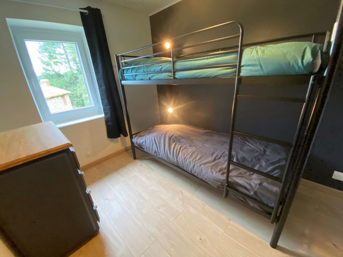 1er étage : 4 chambres (1 lit 140, 1 lit 90, 1 lit 160 , 2 lits superposés 90x190), salle d'eau avec wc, mezzanine avec coin lecture et jeux de société.