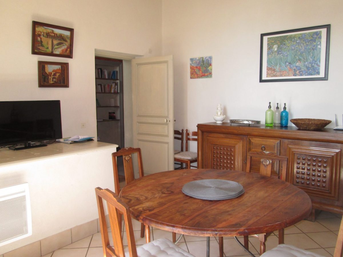 - Salon - salle à manger contigu à la cuisine : table ronde et chaises, TV à écran plat, chaînes de la TNT, WIFI (connexion gratuite et sécurisée). Canapé, fauteuils, table basse, lampe sur pied, … Assortiment de jeux de société tous publics : Scrabble, Pictionary, jeux de cartes, …