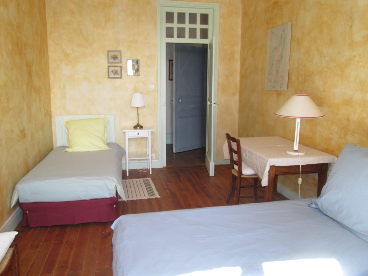 → Chambre 1 (grande pièce lumineuse) : 2 lits 1 pers. en 90 cm x 190 cm. Canapé, fauteuil, table de bureau et assise, …