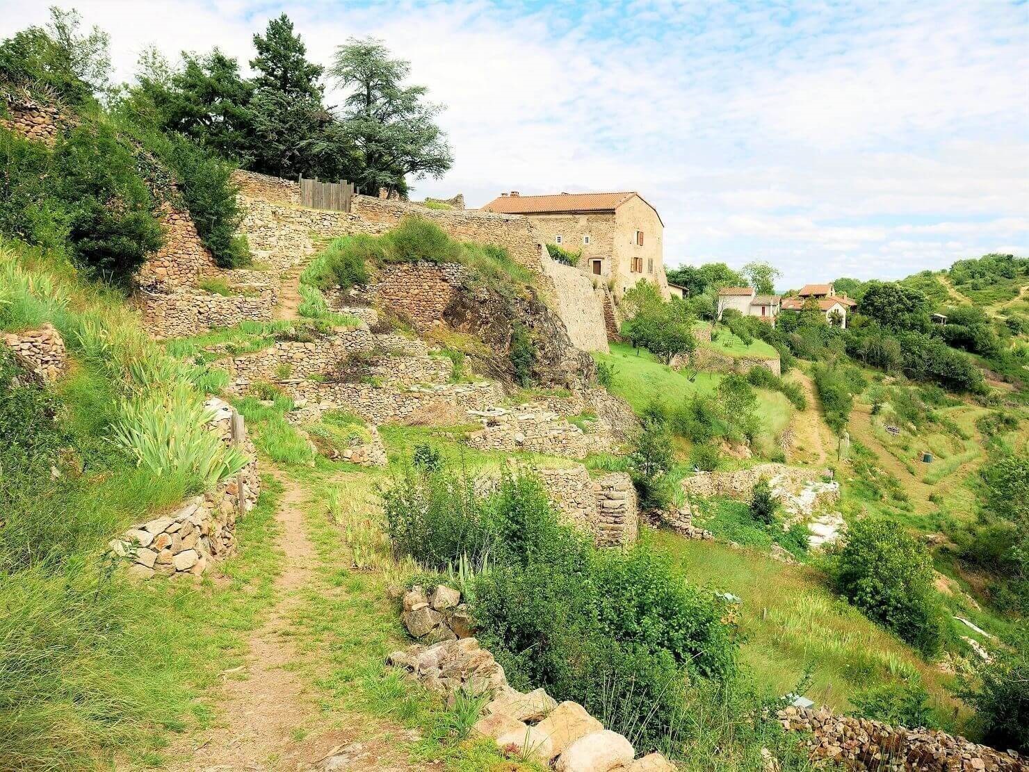 Perché à 620 mètres d’altitude, ce hameau construit sur un pic à proximité des Volcans d’Auvergne offre des panoramas époustouflants à 180° sur le massif du Cézallier et les monts du Forez.