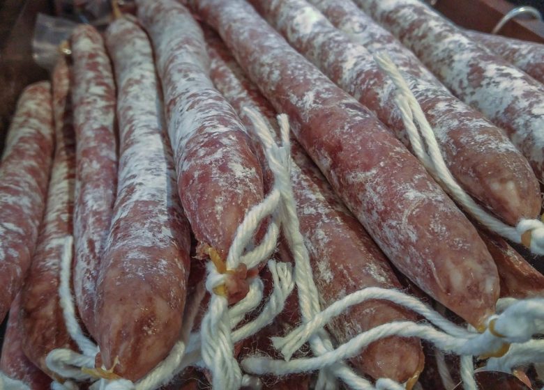 L'exploitation se situe dans un petit village à 1000m d'altitude niché au cœur de la forêt casadéenne. Nos porcs sont élevés à la ferme et transformés dans notre atelier. Notre activité est principalement la transformation en produits secs : saucissons, saucisses sèches, jambon, poitrine roulée, filet séché, bocaux : terrine campagne, pâté de tête, jambonneau, boudin...